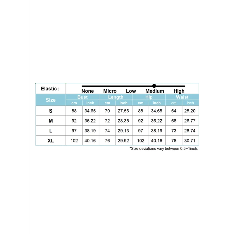 XL=US10=UK14=EU42(cm / inch) Bust: 102.0 / 40.16, Length: 76.0 / 29.92, Waist: 78.0 / 30.71, Hip: 102.0 / 40.16
