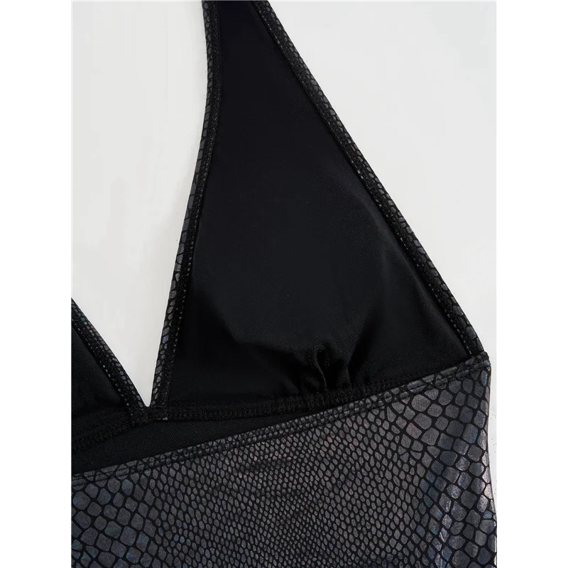 Snakeskin Printed, V-neck Triangle Bra, Cheeky High Cut Briefs,which makes you Stand out from the crowd in this snakeskin bodysuit .