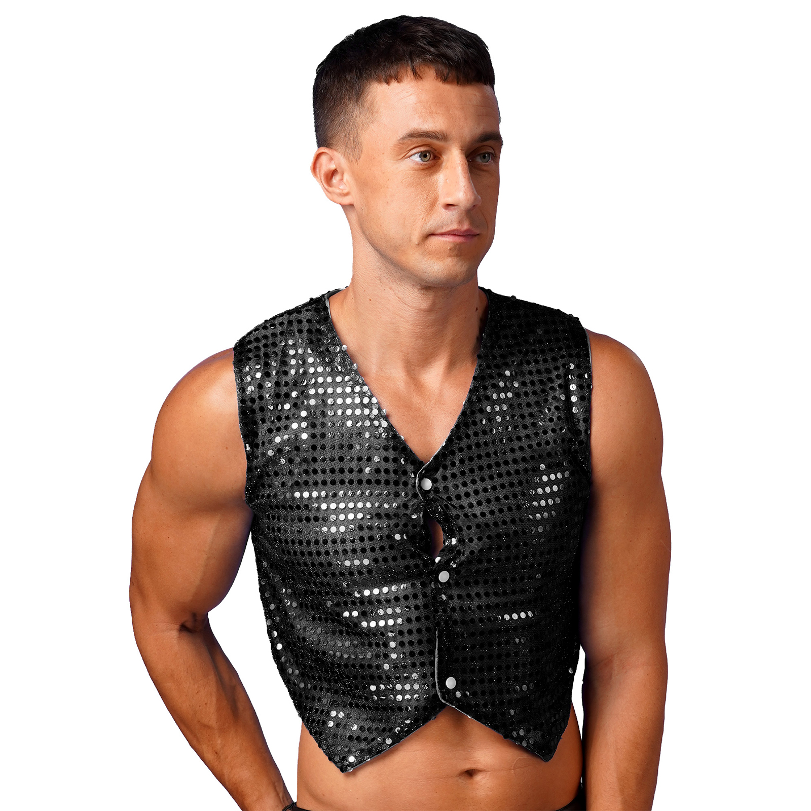 Fashion dance vest for men, decorated with sequins, sparkle under the light to brighten up any performance.